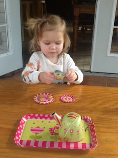 | Emerald loves her new tea set... we have tea parties all the time! |